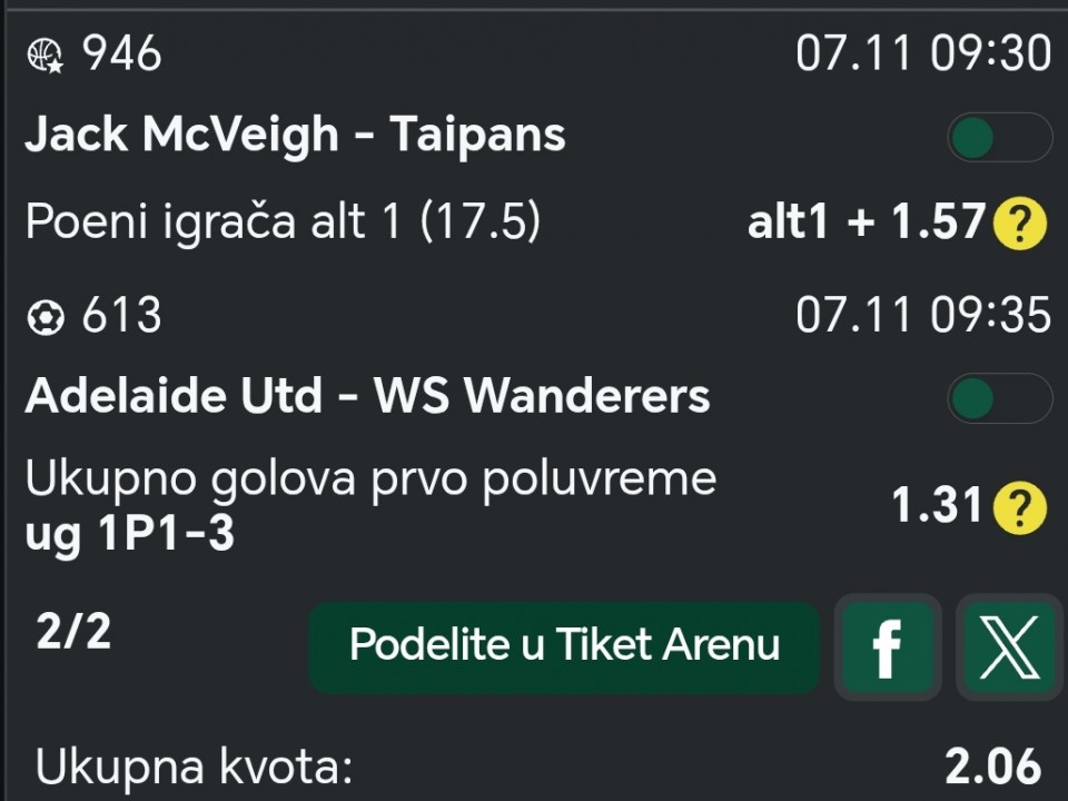 tip: over 3.5 (76 minut trenutni rezultat 1:2)