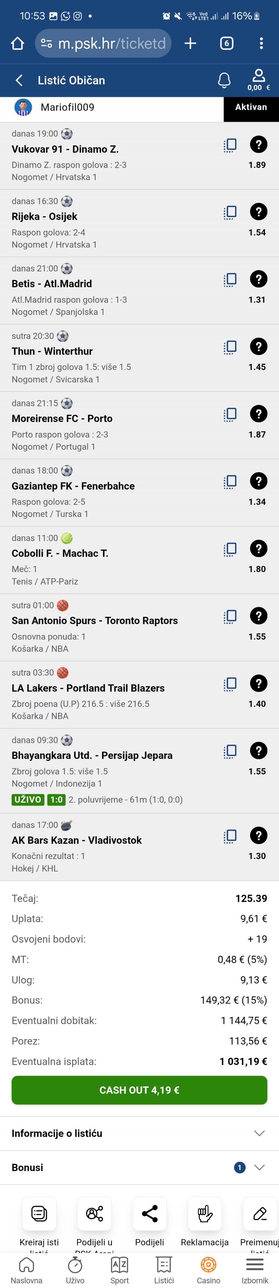 Samsunspor 1+I&3+ 2,40 nije ucitalo na prvom paru. Srecno.