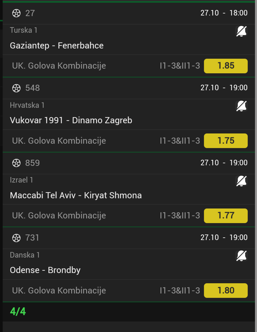 Prvobitno sam hteo da odigram da Malmo daje 2 gola, ali kvota na njih iz nekog razloga naglo raste - bila 1.95 sad je 2.15. Hamarbi ne može do titule, obezbedio je Evropu, tako da mi nije jasno šta se tu dešava pa ću je preskočiti, ali ću svakako ispratiti za ubuduće treba li da obraćam pažnju na ovakve stvari. Tako da je izbor pao na Turke jer oba tima igraju dobro ove sezone, a tu su naravno i njihovi H2H dueli doneli malo prevagu za ovaj tip jer su poslednja 3 duela došla čak GG4+...
