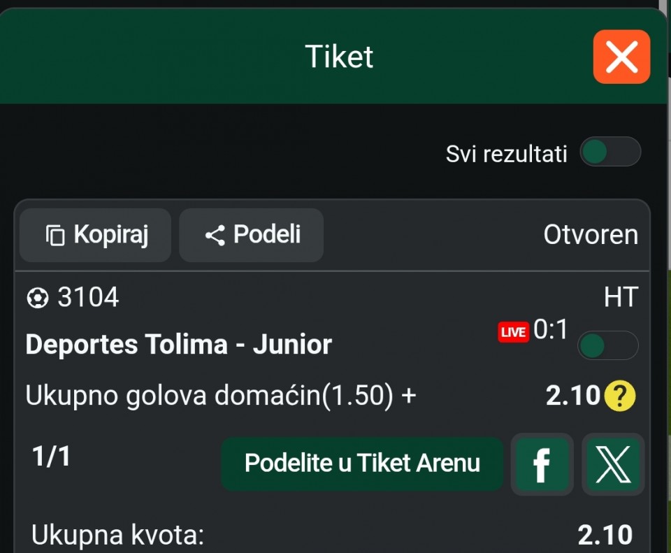 Tolika juri sada već preveliki zaostatak od 4 gola , gosti imaju crveni Tolima mnogo bolja u prvom delu sa ovim crvenim kartonom za Junior pri kraju poluvremena, mislim da mogu do barem 2+ gola, srećno!