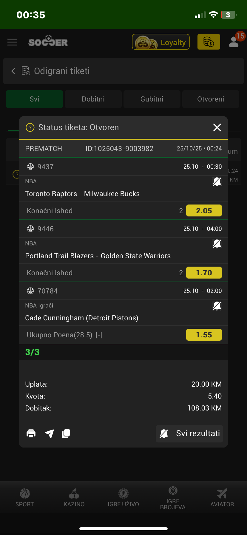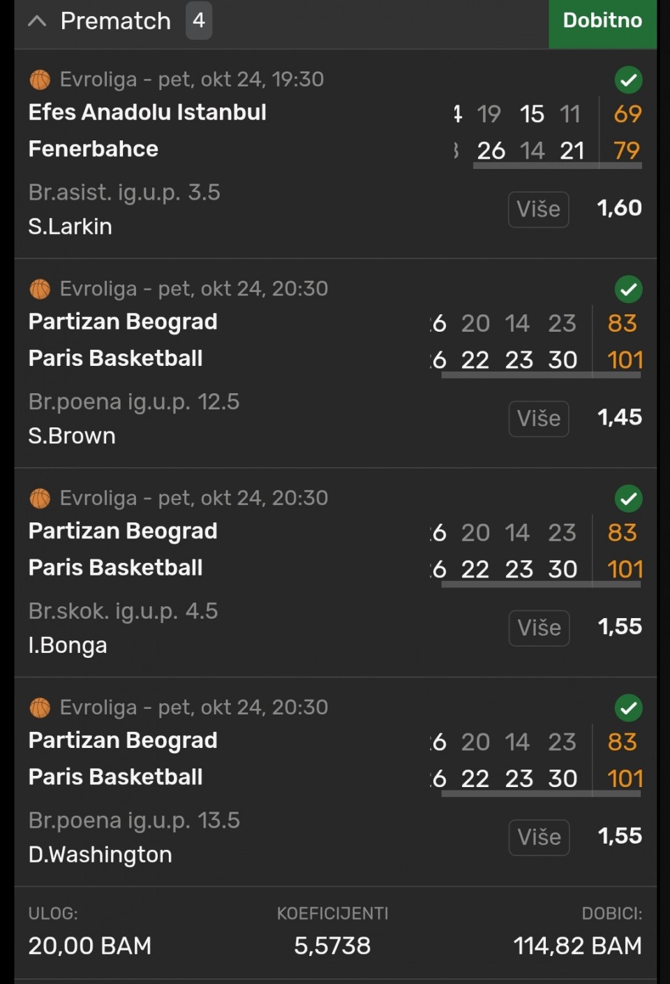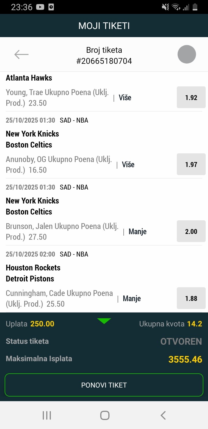 Od veceras postavljam dubl NBA svako vece, budzet je 200e pa da vidimo dokle cemo dogurati.