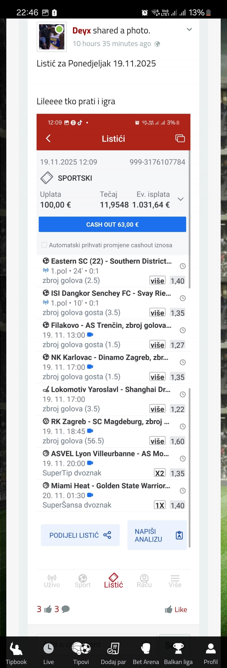 tip: over 3.5 (74 minut trenutni rezultat 1:2)