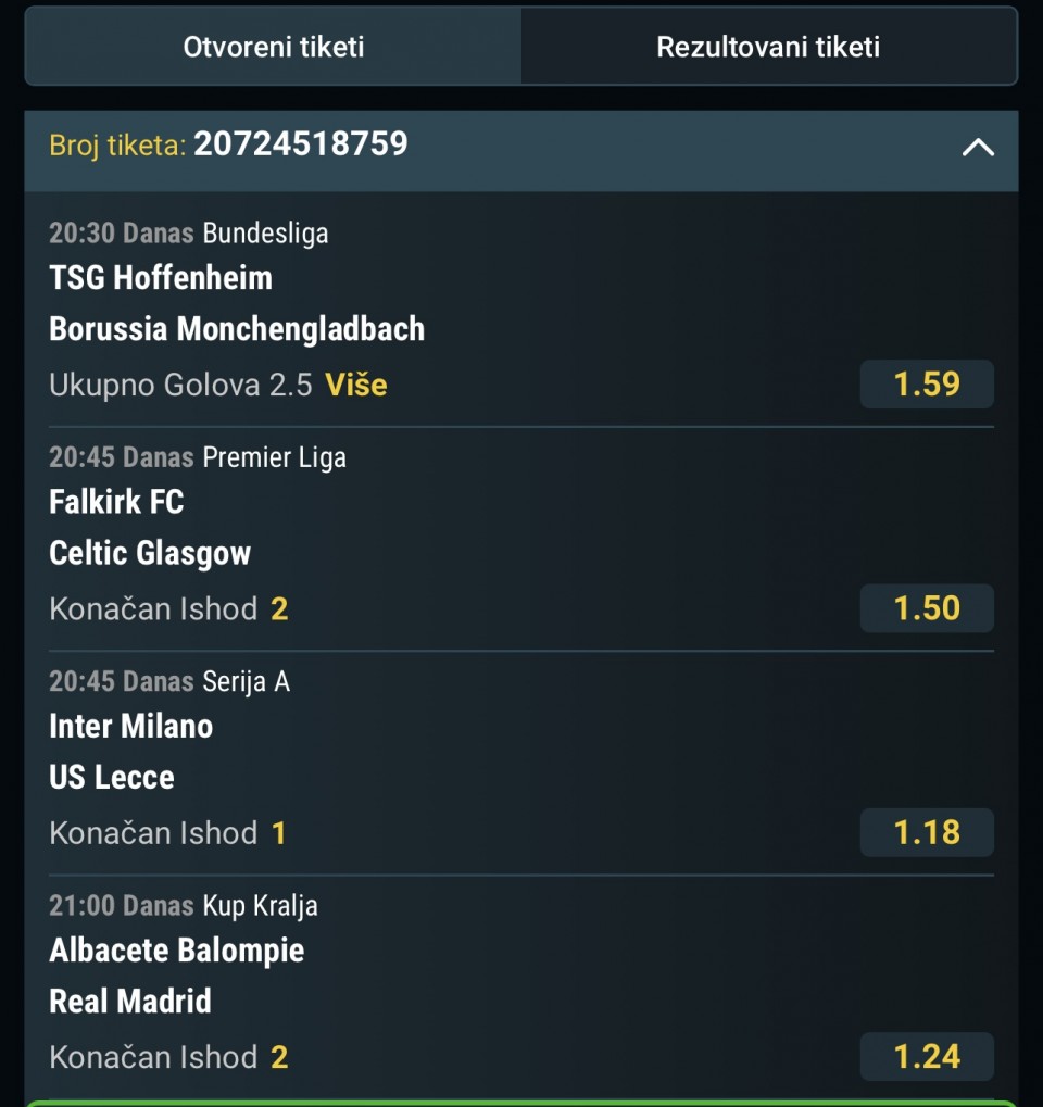 Lepo su Nemci počeli ovu godinu sa golovima pošto je na svim utakmicama od petka postignuto makar 3 gola, pa da ih ispoštujemo i danas. Odlučio sam se za utakmicu za koju smatram da će biti dosta šuteva, pa samim tim i veće šanse...3. nedelja - 2. korak ⚽