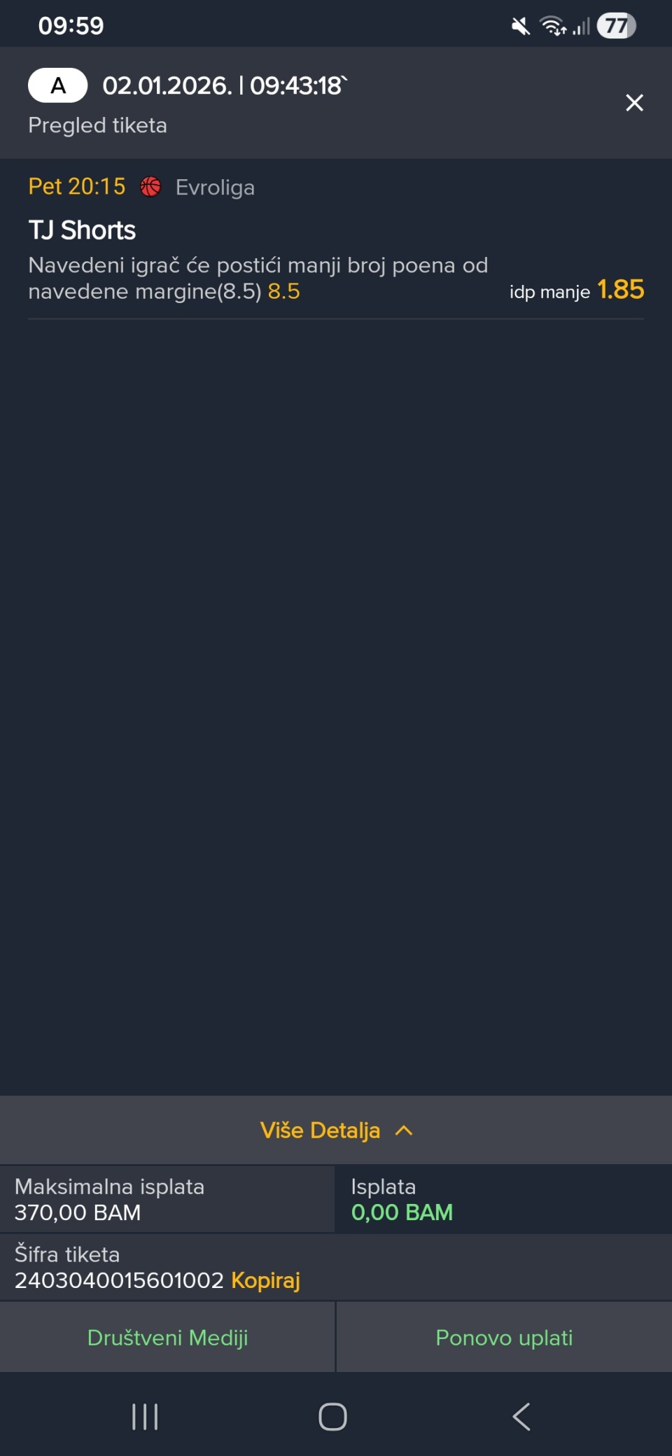 Ukupna kvota [2,00] srećno