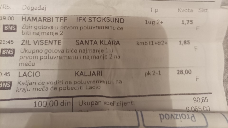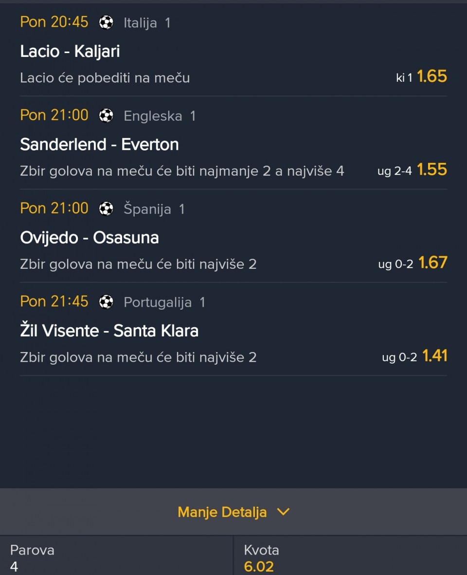 20.30h. Pezaro - Juve 5+ (8,95) .... (83,68)