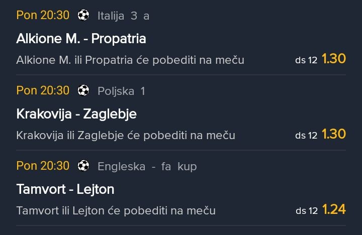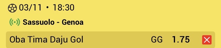 20.30h. Pezaro - Juve 3+ (2,17) .... (4,79)