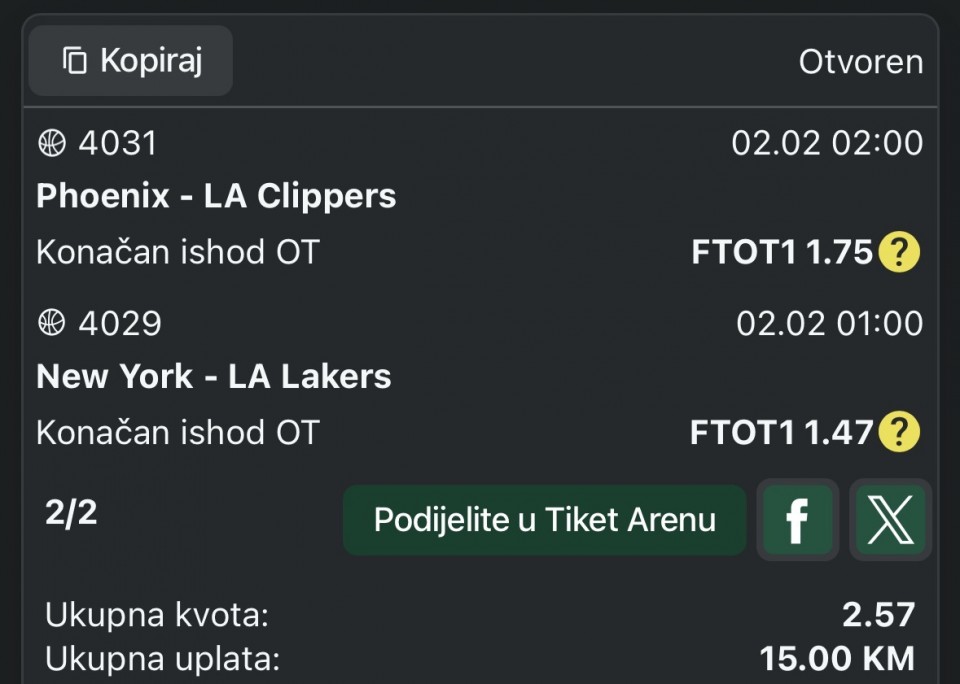 Evo dva meca u kasna doba predlažem odvojeno za odigrat TIP na domacina 2+ kvota Sretno💪
