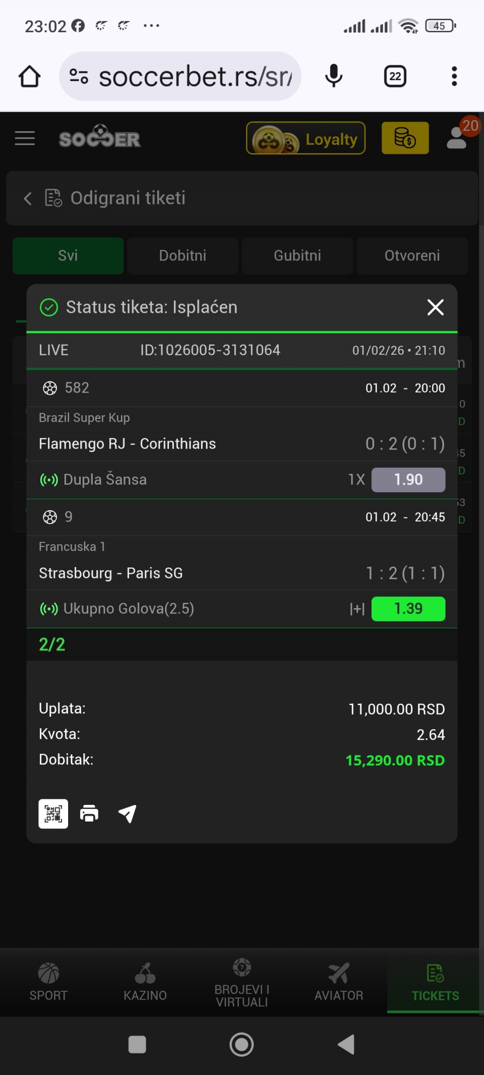 Evo ljudi da okacim i da pokazem da i kladza zna da ispravi gresku Kao sto sam rekao u momentu kad sam igrao nisu azurirali crveni karton Tiket je uz malo srece prolazan ✅✅✅