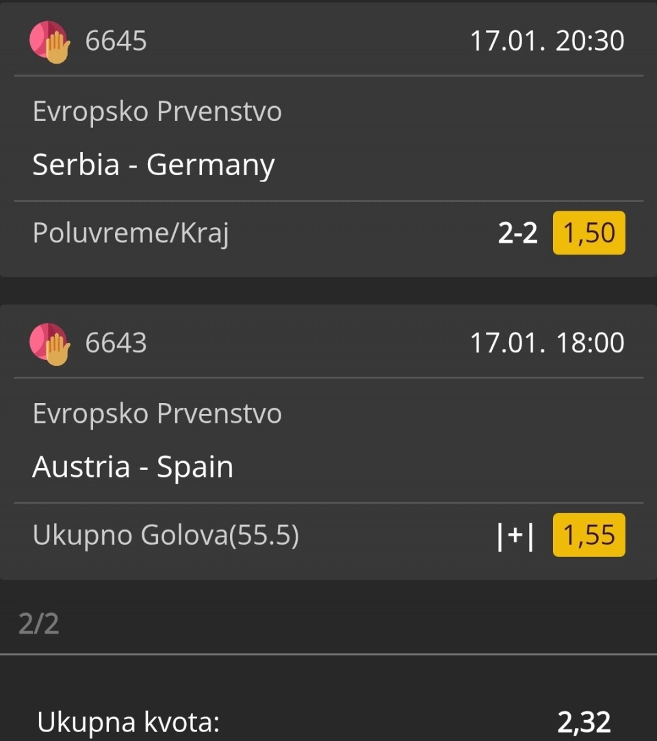 Mislim da...Za danas šo se tiče rukometa idemo sa sledećim igračima.