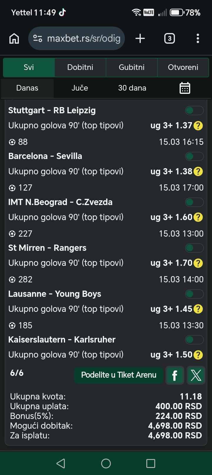 tip: over 3.5 (79 minut trenutni rezultat 1:2)