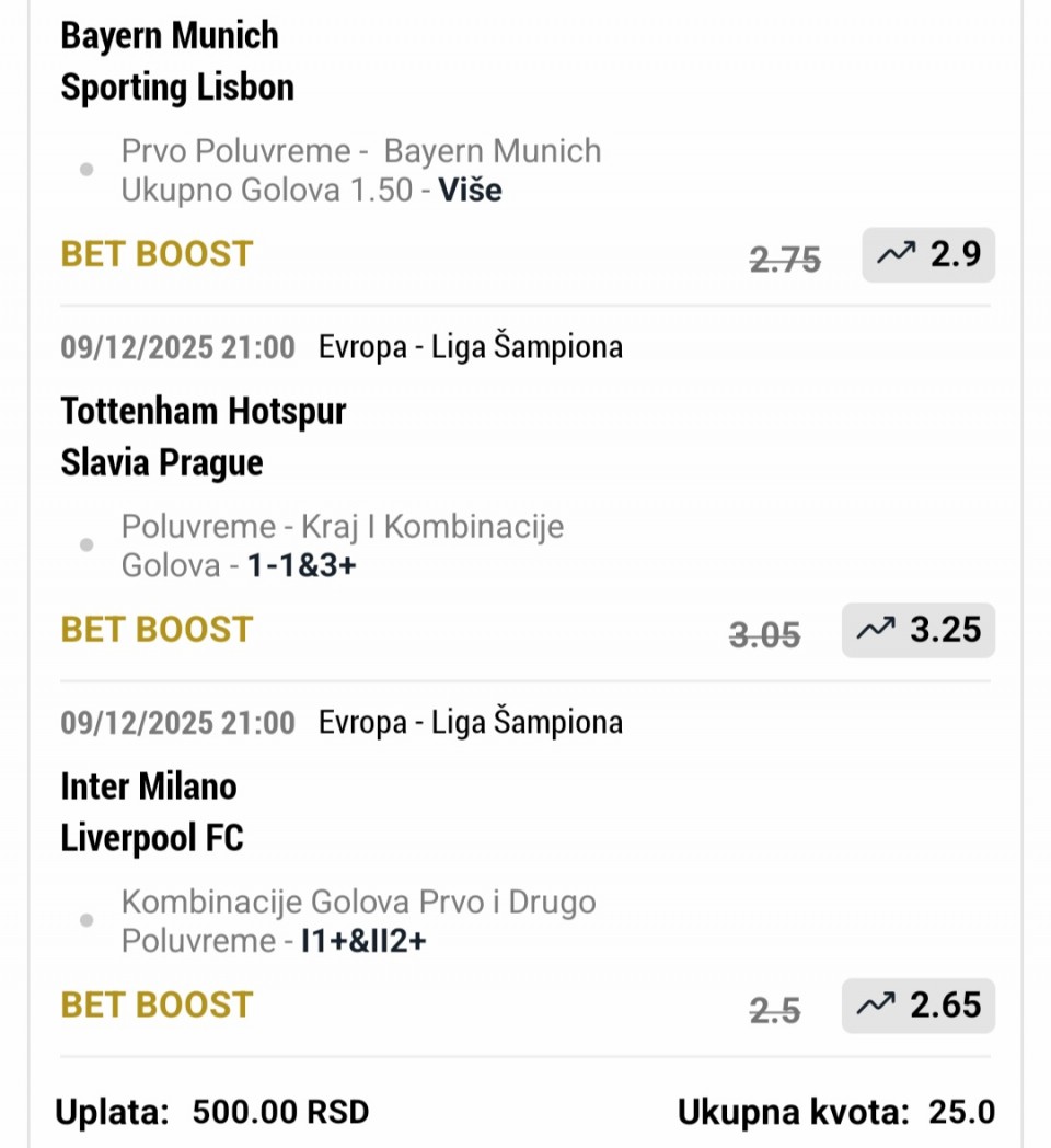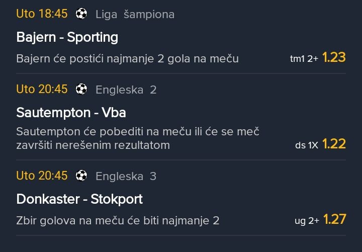 DOBRO VECE DZEZERI .....Sutra L.Š pa uskoro dva singla ili dubl ..jer kvote su parodija na porno film ...