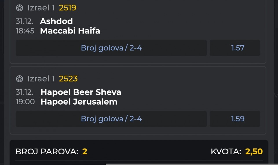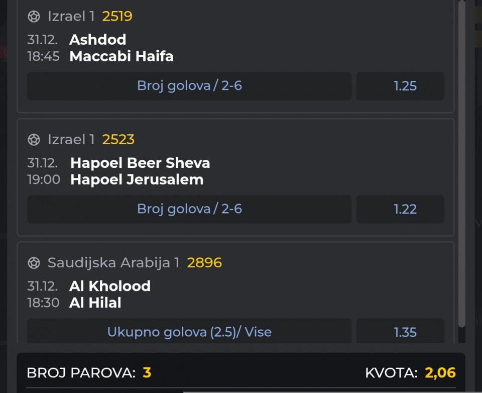 Nakon teskog udarca sinoc, vracam se ponovo danas naravno, zelim pre svega da vam pozelim srecnu novu godinu i sve najlepse od srca, da praznike provedete pre svega sa najmilijima jer je to najbitnije! Jer najverovatnije danas necu biti na sajtu...Nakon teskog udarca sinoc, vracam se ponovo danas naravno, zelim pre svega da vam pozelim srecnu novu godinu i sve najlepse od srca, da praznike provedete pre svega sa najmilijima jer je to najbitnije! Jer najverovatnije danas necu biti na sajtu vise, zato i saljem dosta ranije predloge sto se tice danas, i kao mini poklon da kazem od mene, dobijate 4 predloga za danas 31.12 ranije meceve, da zatvorimo ovu godinu nadam se kako dolikuje, i jos 4 za preko ponoci odnosno 01.01