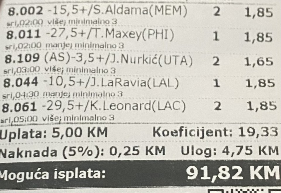 NBA * B. Portis...Postovanje svima i prijaton vece zelim, ostavicu ispod tiket koji cu i ja najverovatnije ispratiti za kraj ove nam 2025. Godine.