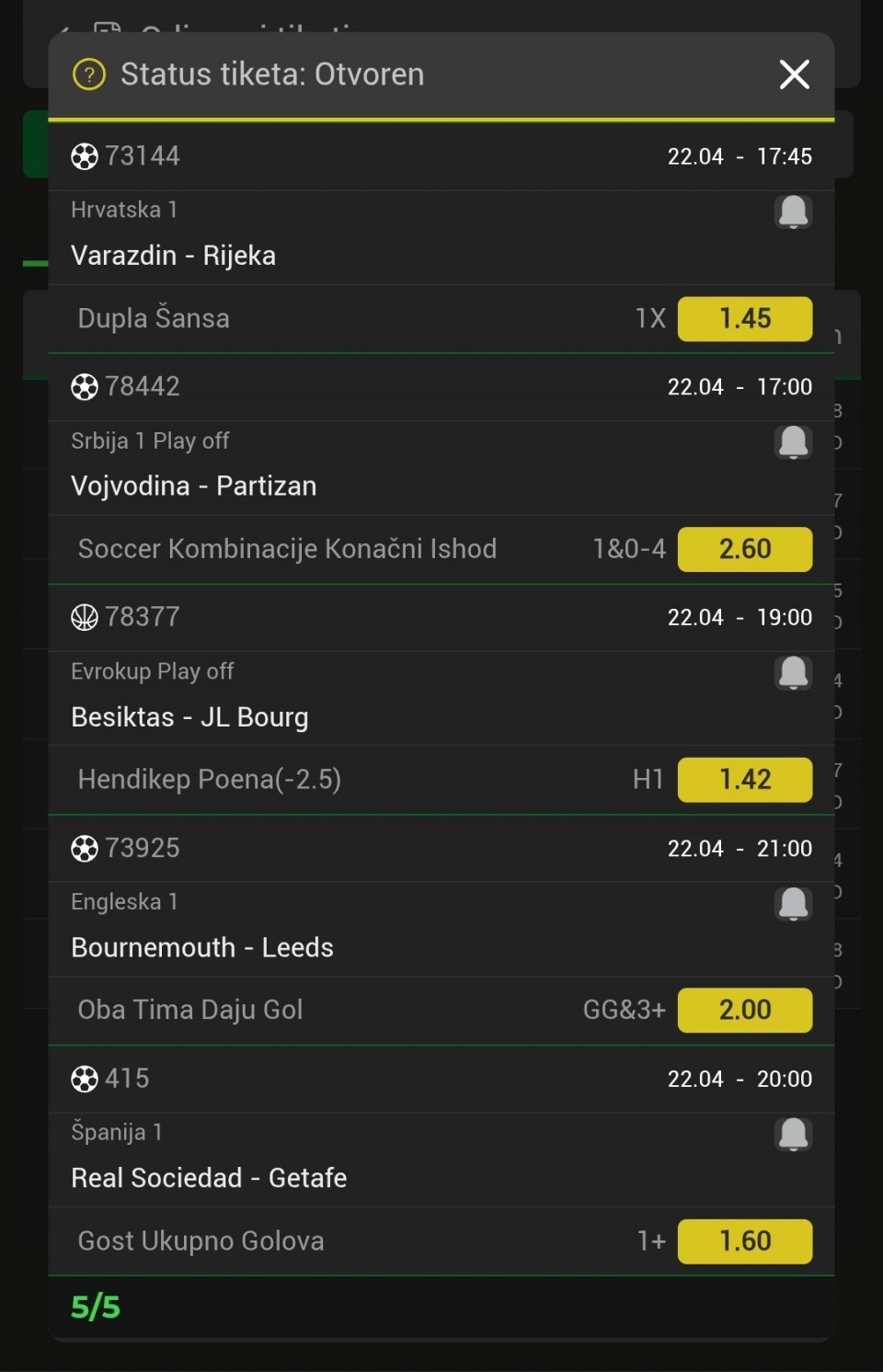 Danas pauza, nema nicega. Osvrt na jucer 4/5✅✅ Ukupno 38/46 ✅✅