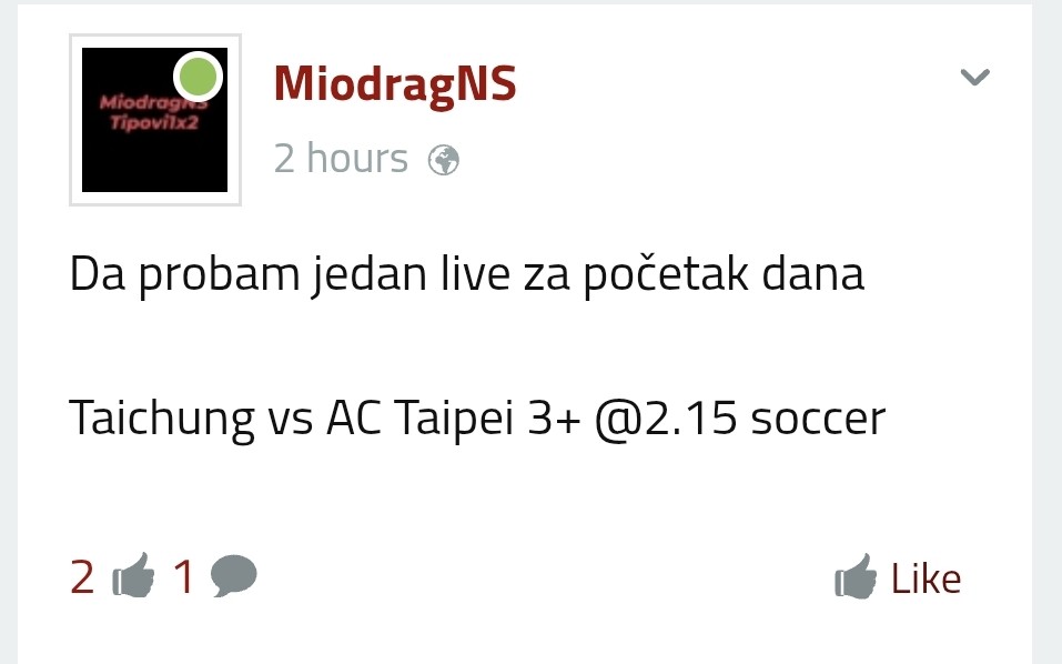 E sad, posto ja proucavam prijelaze odredjenih liga (sad sam na Hong Kongu) i jos neke stvari, nemam bas vremena analizirat te suradnje i nizove kako treba no i sam sam poceo malo vise da to igram i bome sam se isfrustrirao samo tako. Nadjem tekmu gdje je bilo 13 puta da pobjedjuje favorit doma i naravno bas sad su odlucili prestqt niz i bilo je tako cudnih padova, i kod klasicnih 1x2 i kod golova itd, ugl sto se tice ovoga 1x2 kad god sam radio prematch analizu ili recimo uzeo prijedlog od tebe ili Mollya pa analizirao poslije, uvijek je taj niz bio prekinut ako se netko bori za nesto i bas onako mu jako treba. To je onako neko moje misljenje gdje traziti prekide nizova jer svakoj seriji dodje kraj. 1 hour 15 minutes ago