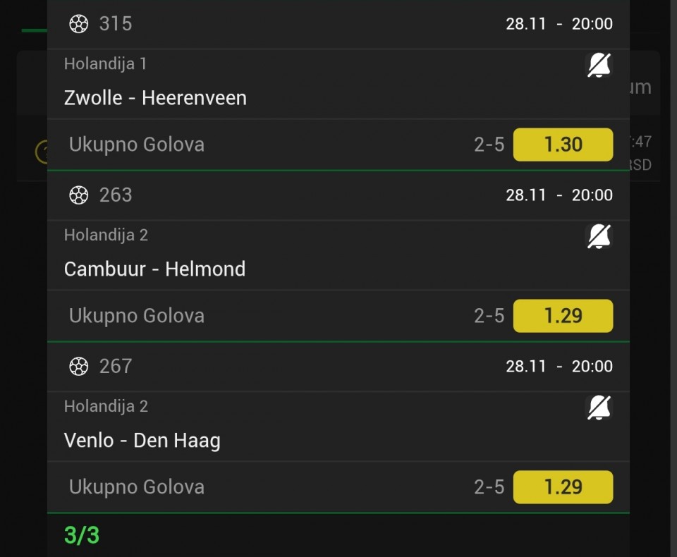 BMG -...Ne preferiram ovakve tikete ali ponuda je danas kritična, ne sviđa mi se nista za singl pa sam nagruvao 9 komada, kvota 6,14