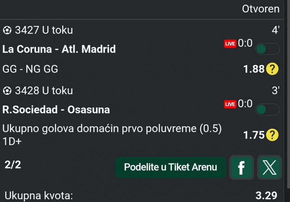 tip: over 3.5 (77 minut trenutni rezultat 2:1)