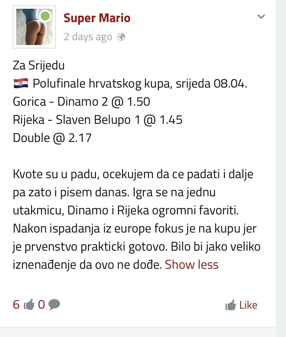 Vidim dosta vas je pokušalo da pogura ovaj tip, šteta... Ovo je jedna od lošijih analiza što se tiče rezultata. Najlošija je bila još početkom godine kada sam isto odigrao 4+ i utakmica se završila 0:0. Jedan od aktera...#1 15. nedelja - 1. korak ⚽ ❌