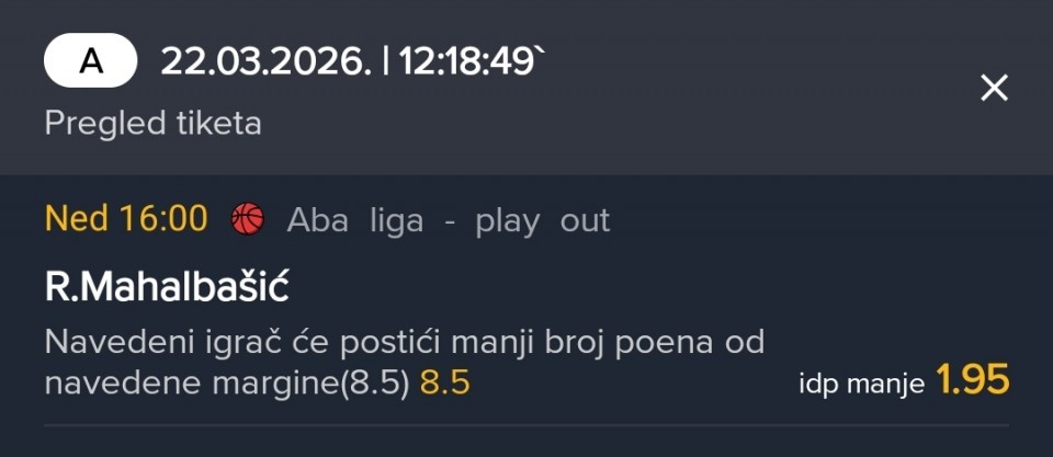 Jučer Mahalbašić igrao 40 min u domaćoj ligi, u Aba na posljednje dvije utakmice dobijao po 5 i 6 minuta.