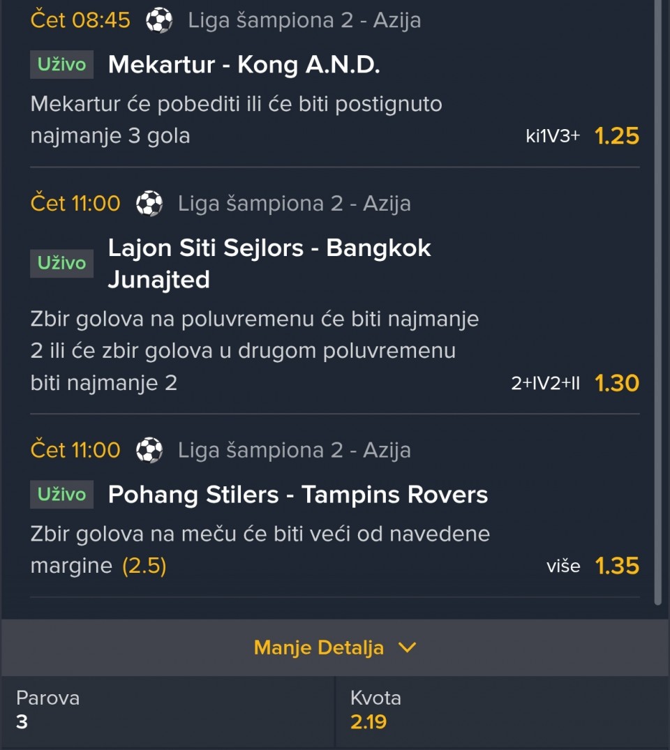 Brat je ziv i vraca se na kratko..Mesec i nesto bez kocke,nisam 1 mec pogledao niti usao na rezultate..Za danas neki predlog neka 3-4kv na jajarski ulog 500-1000€..