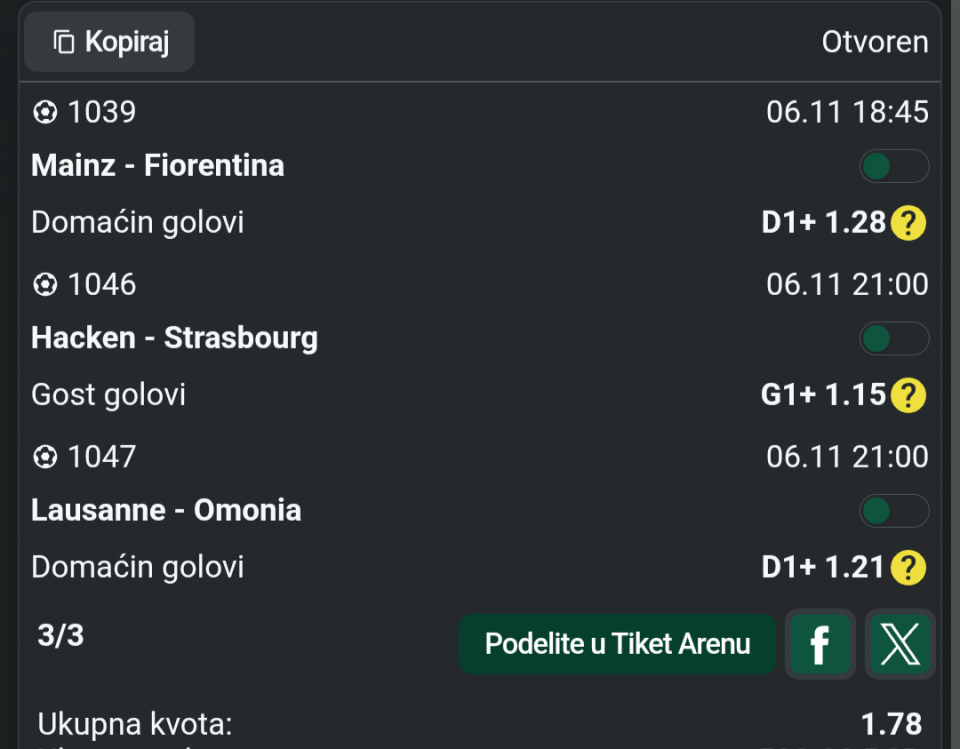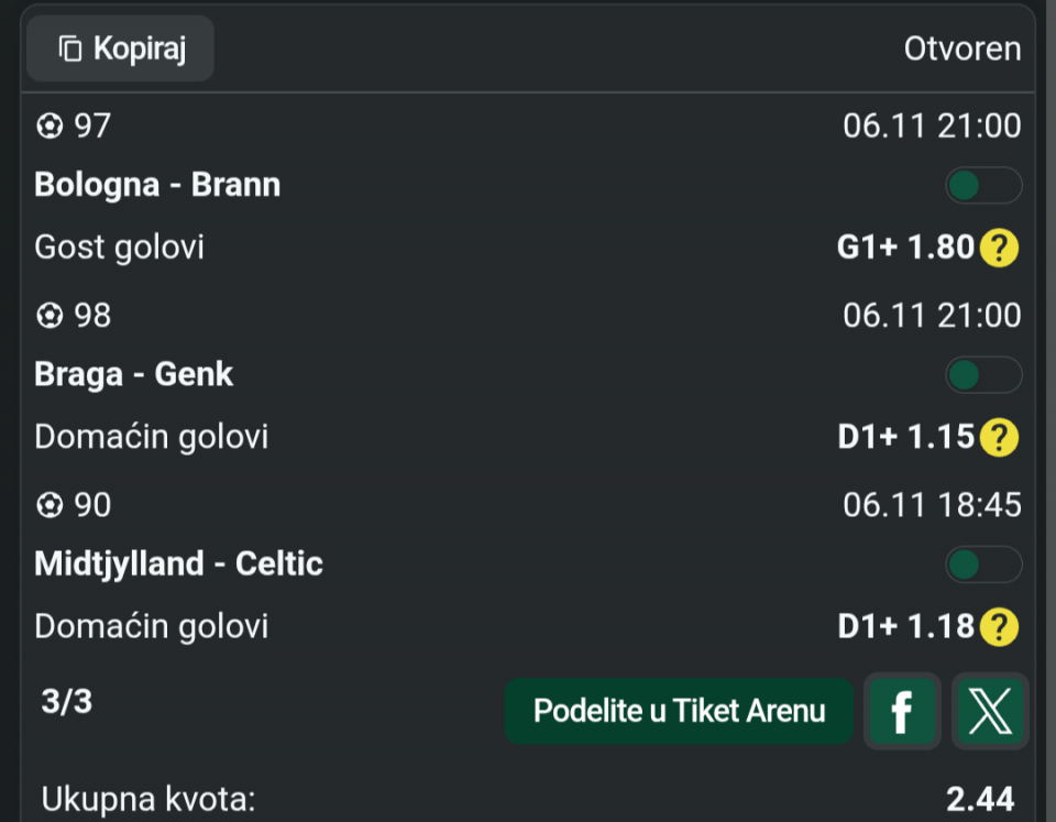 Vitoria 1 2,40 ✅✅✅ Malo losa serija,ali idemo dalje. Dobro jutro..