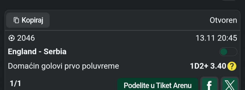 Dugo iscekivani mec s reprezentacijom Engleske, na vembliju.. Mec od koga vrlo verovatno nama sve zavisi, naravno mislim na dalji prolaz, sada s novim trenerom Paunovicem, o kome ja imam izuzetno visoko misljenje, ali nije imao puno vremena za pripremu, pa koliko je realno doci do nekog pozitivnog rezultata malo je verovatno, pogotovo kada uzmemo u obzir da Englezi u ovaj mec ulaze s gol razlikom 18:0, ne ocekujem puno sansi ovde za gol pre svega Srbije tako da iako dobiju nesto moraju to iskoristiti na najbolji moguci nacin, tip za golove u prvom i drugom poluvremenu ne deluje mi lose kada uzmem u obzir da je ovo maltene biti ili ne biti mec za nas i da moramo krenuti malo agresivnije, A Engleze smo videli vec kako realizuju svoje sanse smatram da je realno da po gol padne u oba poluvremena