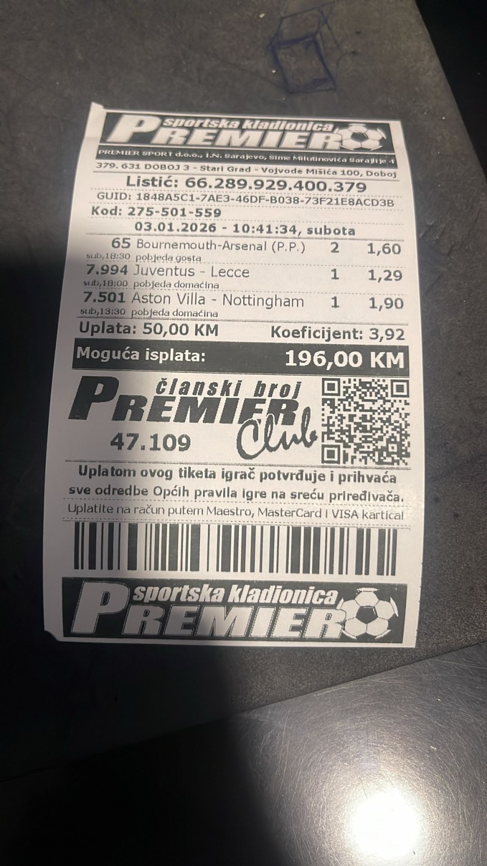 Цео добитак ће ићи на неки следећи дубл из лиге петице кад буде било.
