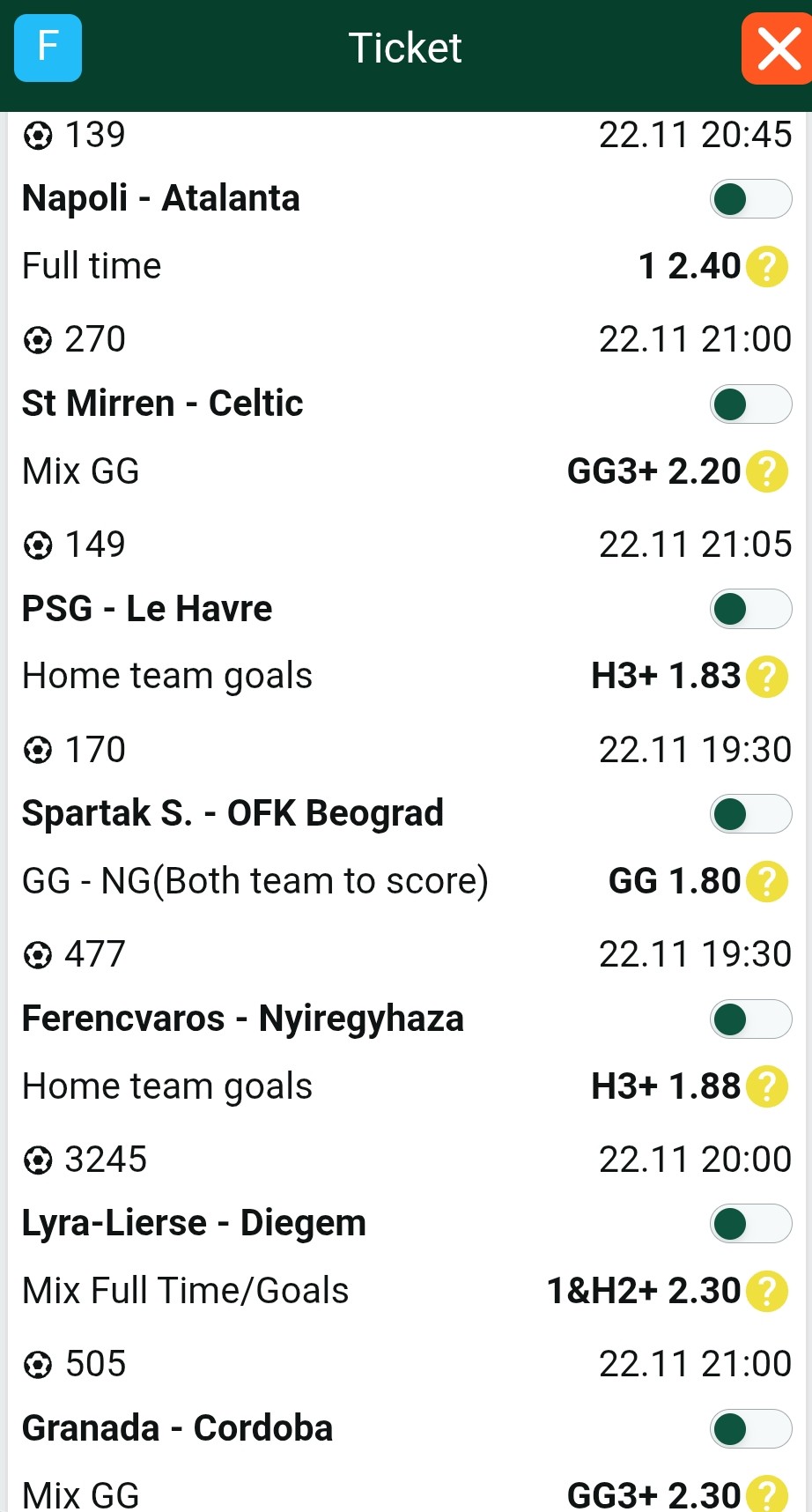 Napoli i atalanta umanjili sa golovima poslednjih par kola pa mislim da možemo večeras videti dobru...Tiket odigran u cetvrtak pa kvote mogu biti drugačije