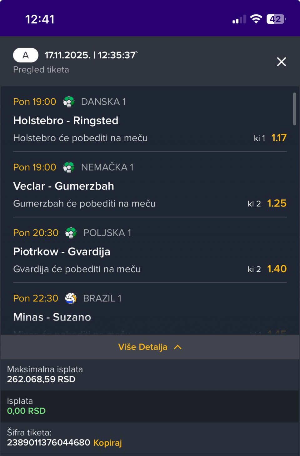 (17.11.) 𝙺𝚟𝚘𝚝𝚊: 2.80 → prvi korak
