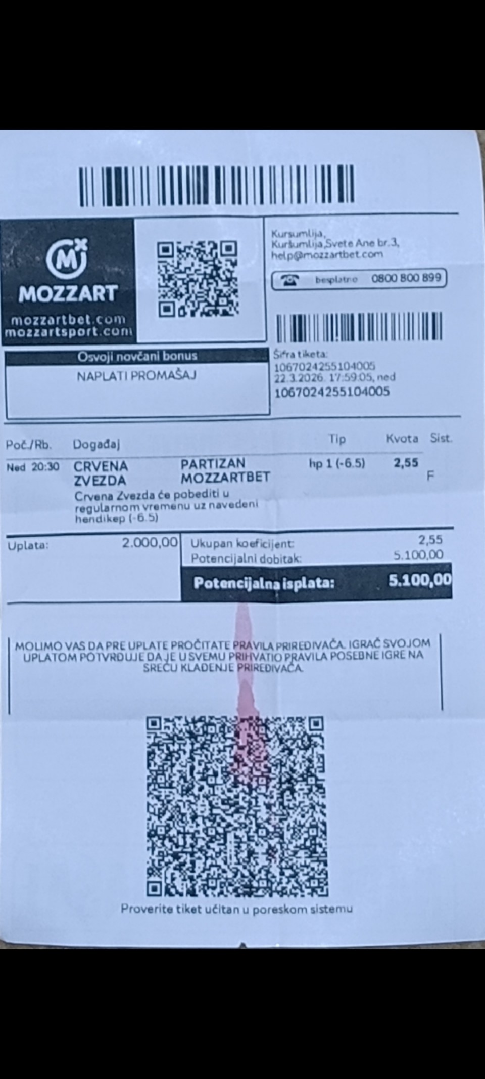 H2(+3.5) @1.62 mozzart ✅ Won.