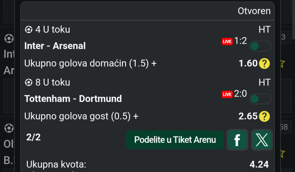 tip: over 3.5 (67 minut trenutni rezultat 1:2)