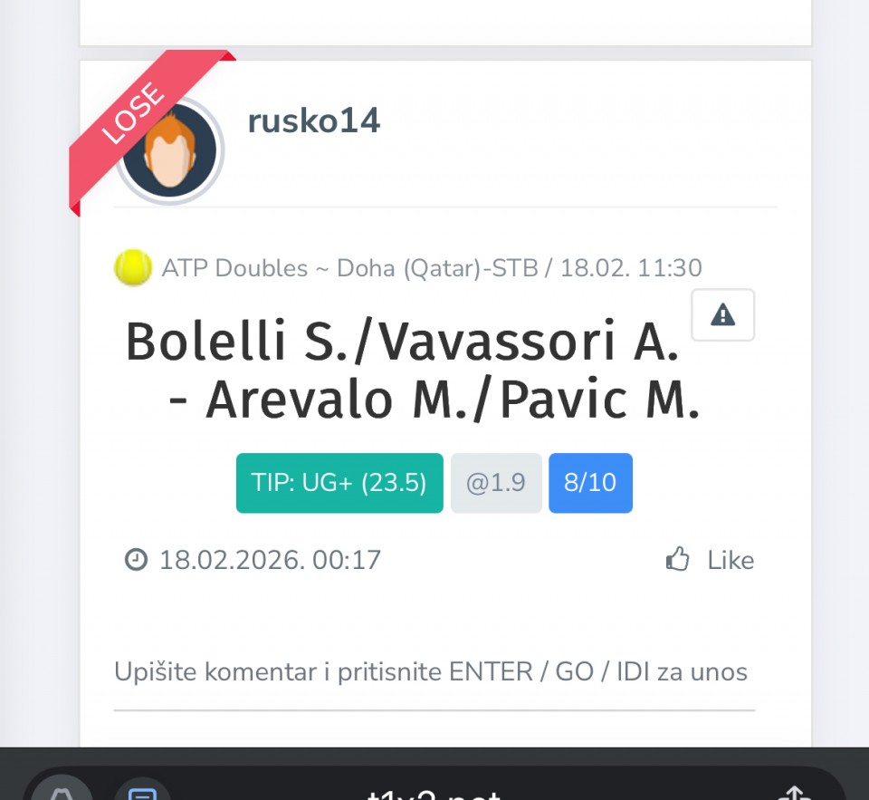 Ćao svima! Svaka čast za ono što radite ovde! 😊 Imam jedno pitanje – zašto ne biste probali da napravite tiket za više dana? Na primer: 2-3 meča u petak, 2-3 u subotu i 2-3 u nedelju. Možda ispadne nešto super! Srećno svima i uživajte u večeri! 🙏...Ćao svima! Svaka čast za ono što radite ovde! 😊 Imam jedno pitanje – zašto ne biste probali da napravite tiket za više dana? Na primer: 2-3 meča u petak, 2-3 u subotu i 2-3 u nedelju. Možda ispadne nešto super! Srećno svima i uživajte u večeri! 🙏 Izvinjavam se zbog načina izražavanja, koristim prevodilac. Show more