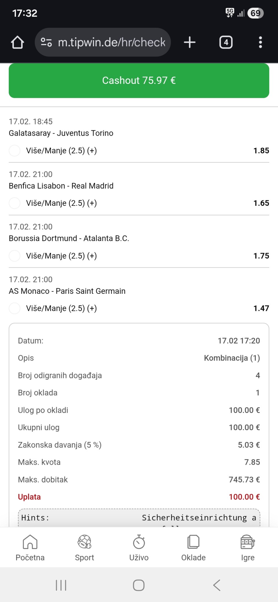 21:00 Borussia D. - Atalanta 1X (1.32)