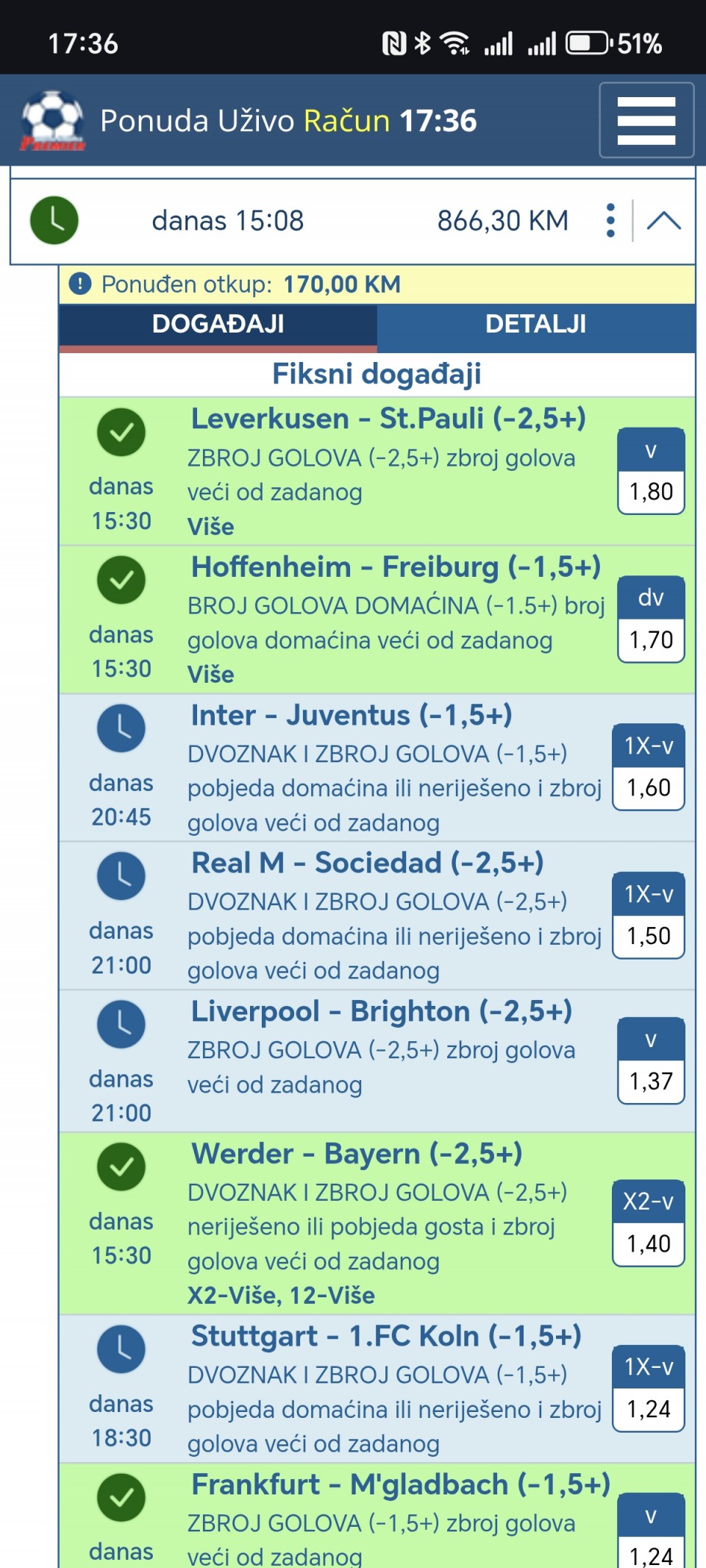 tip: 1X (66 minut trenutni rezultat 0:2)