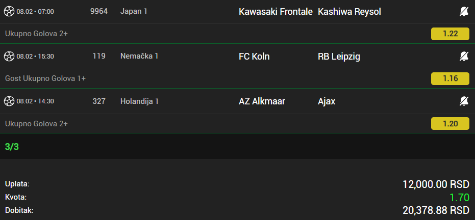 Ovi predlozi su bili u komentaru. Spance sam pokusao da eksperimentisem. Delovalo mi je da je mozda pocetak neke saradnje. Pa sam hteo da vidim da li ce danas da ponove isti rezultat. Na kraju sam i ovim zadovoljan. Dubl kornera mi je bio fiksčina...Ovi predlozi su bili u komentaru. Spance sam pokusao da eksperimentisem. Delovalo mi je da je mozda pocetak neke saradnje. Pa sam hteo da vidim da li ce danas da ponove isti rezultat. Na kraju sam i ovim zadovoljan. Dubl kornera mi je bio fiksčina dana. Jutros sam ih pripremao.