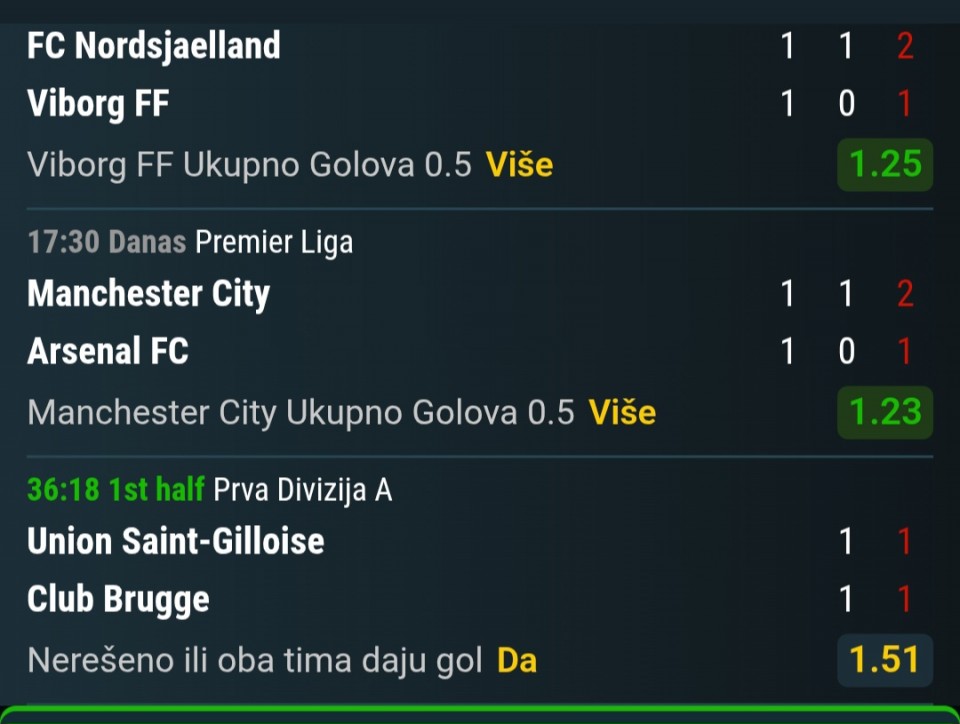 1+I&1+II (1.70) na poslednjih 5 medjusobnih