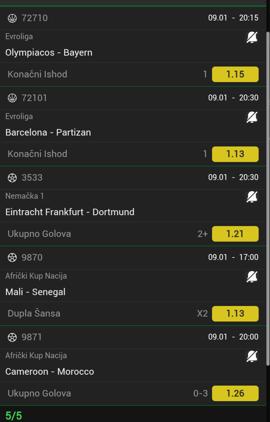 Pozdrav momci, izdvajam brzu i pucacku kosarku i ovog mladica.. Zadnju 9 , za 17 minuta ali i 4 licne.. Veceras mora da gori, uz to senator u feneru.. Dobri ljudi cujemo se