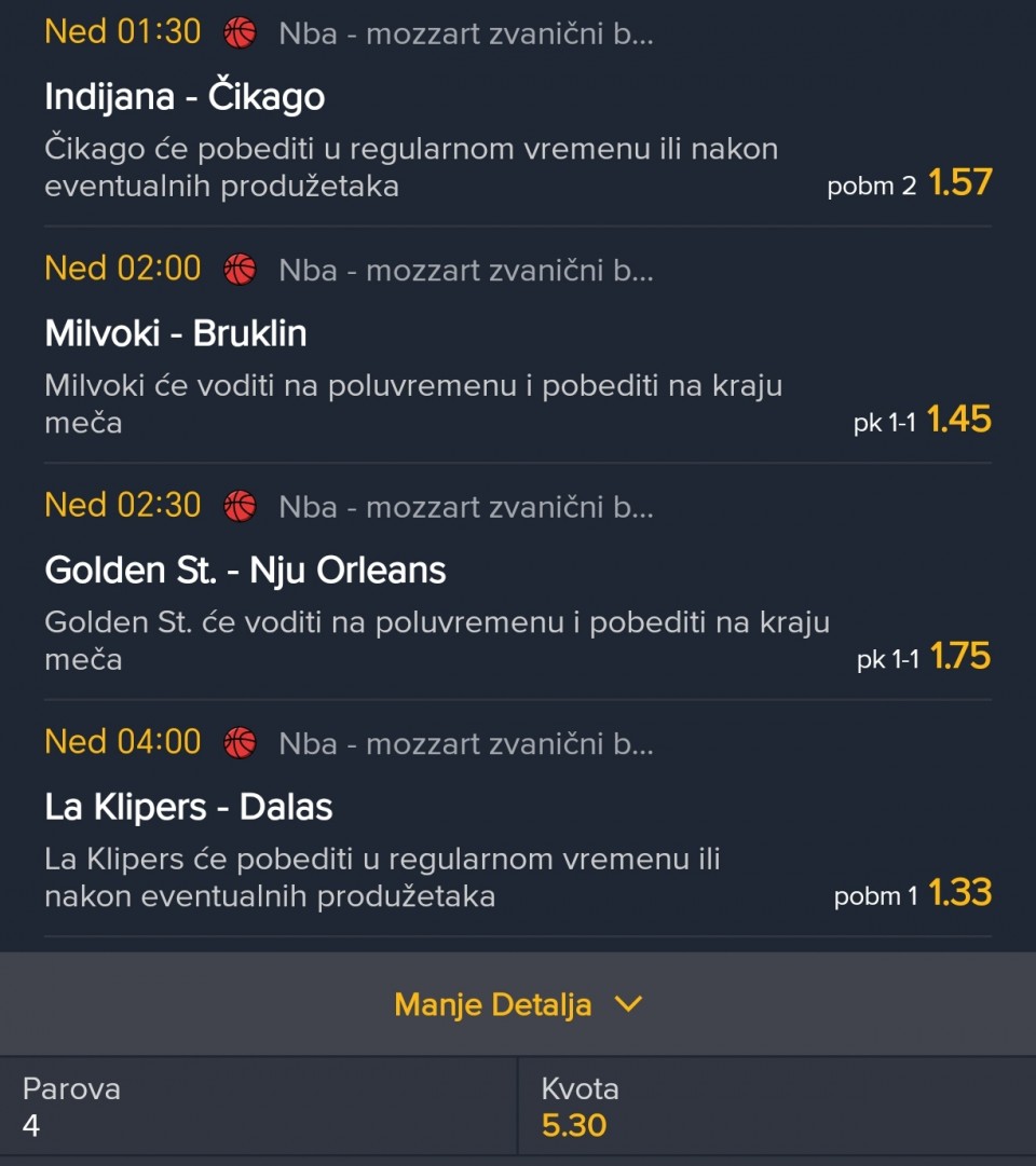 Jos malo razmatram pa kasnije saljem nba za veceras oko 11.