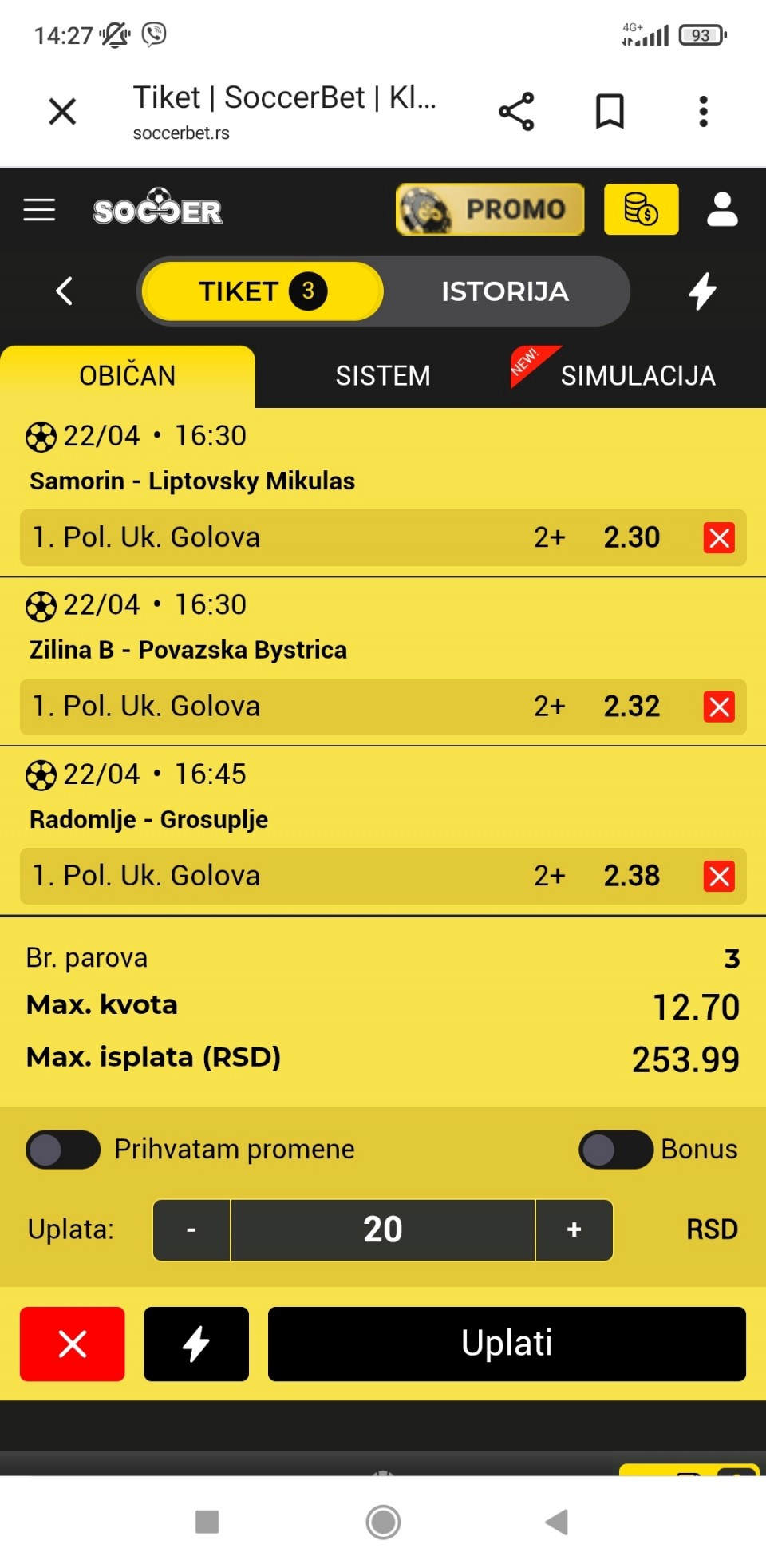 Jako cudne stvari se desavaju na ovom mecu..Uvatim sad ovu kvotu 6.2 da domacin daje gol..Posle minut spustili na 3.6, kvote su kao da domacin igra sa 8 igraca, sve mi lici na gresku..Litvanski kup, Atmosfera je kod kuce efikasna u ligi..Ne vidim...Jako cudne stvari se desavaju na ovom mecu..Uvatim sad ovu kvotu 6.2 da domacin daje gol..Posle minut spustili na 3.6, kvote su kao da domacin igra sa 8 igraca, sve mi lici na gresku..Litvanski kup, Atmosfera je kod kuce efikasna u ligi..Ne vidim zbog cega ne bi 1 munuli Show more