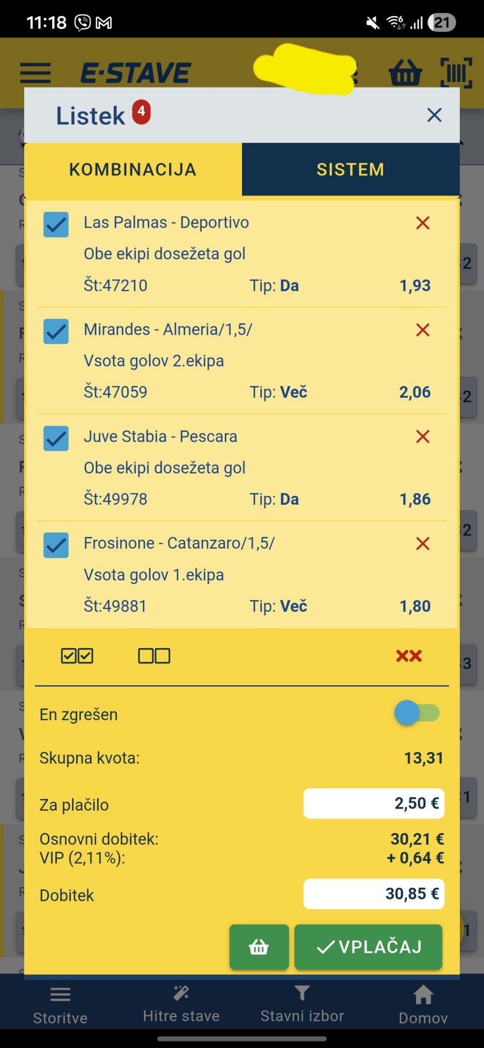 tip: over 4.5 (72 minut trenutni rezultat 1:3)