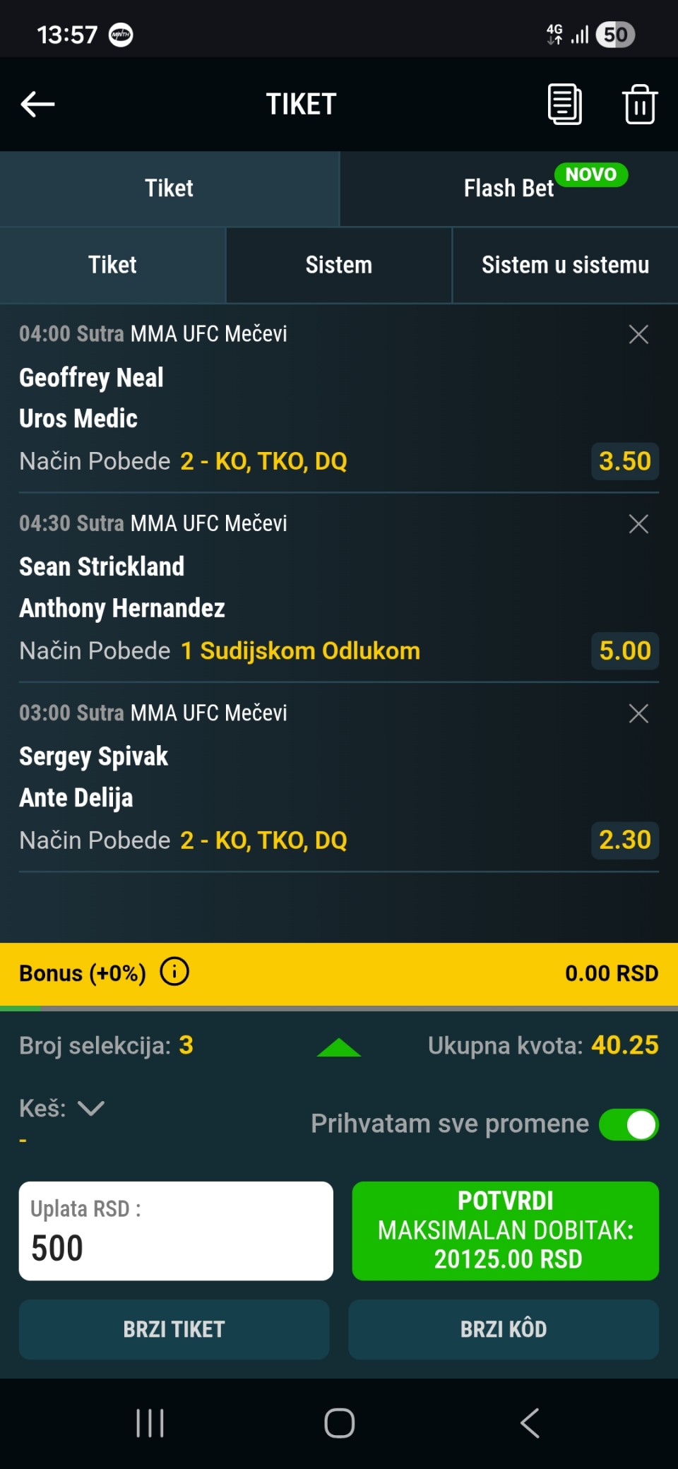 21.02.2026. 16:15h Dep. La Coruna - Eibar; tip: X; kvota: 3.10; uplata: 360,00 din.; isplata: 1.116,00 din.