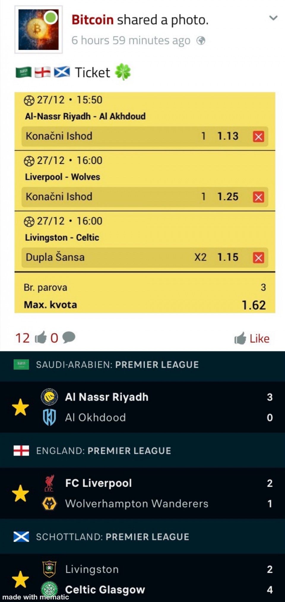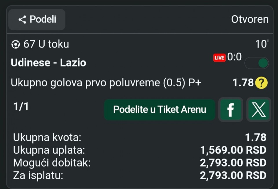 tip: over 3.5 (74 minut trenutni rezultat 1:2)