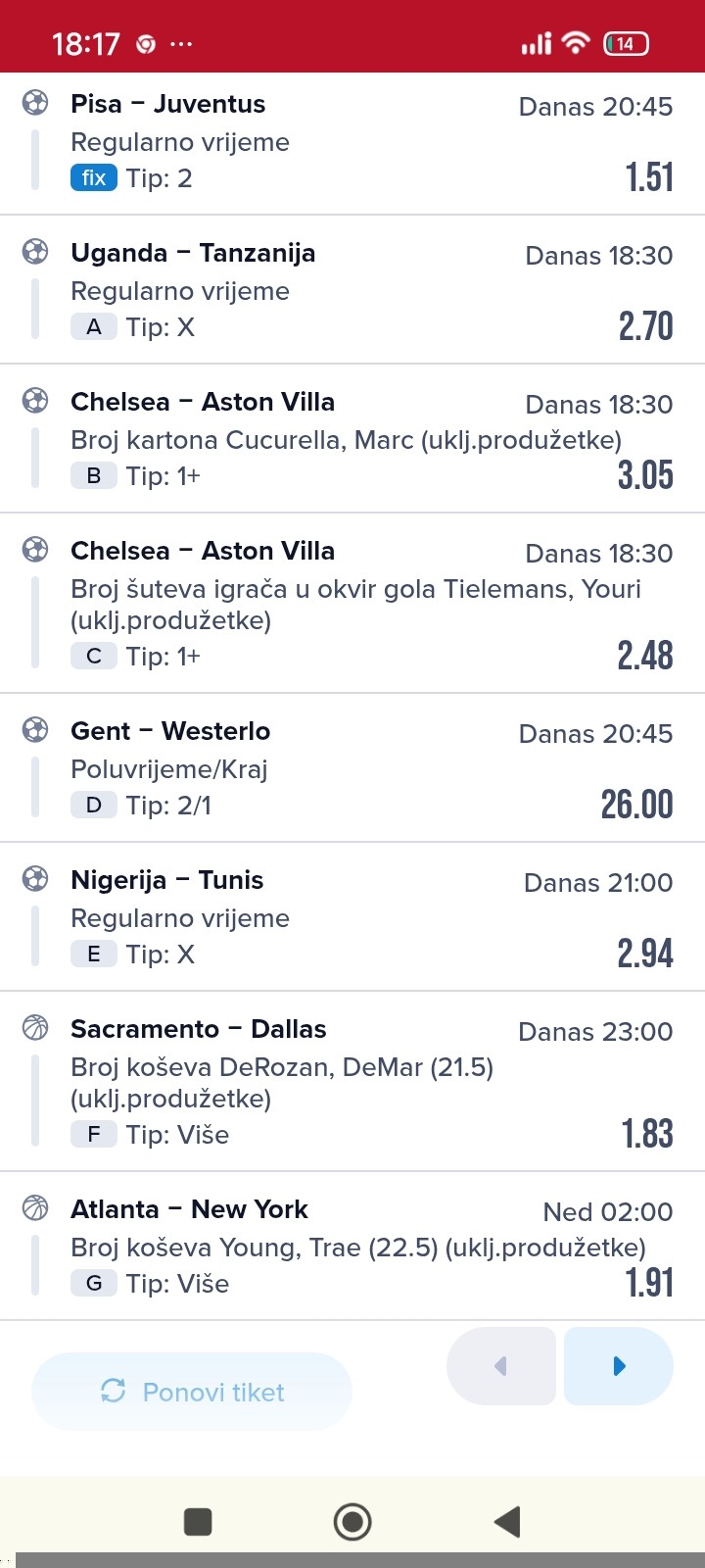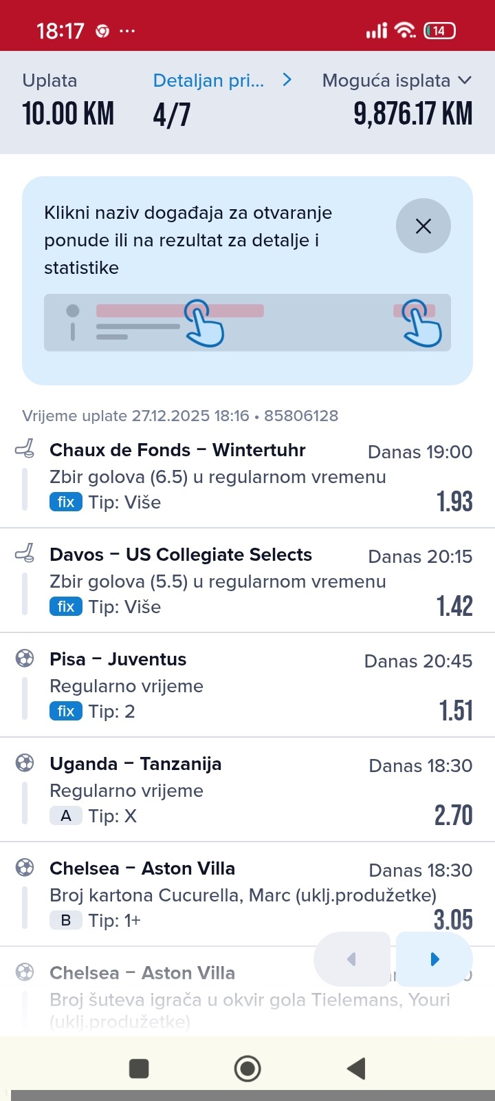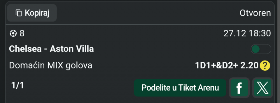 tip: over 5.5 (77 minut trenutni rezultat 3:2)...LIVE