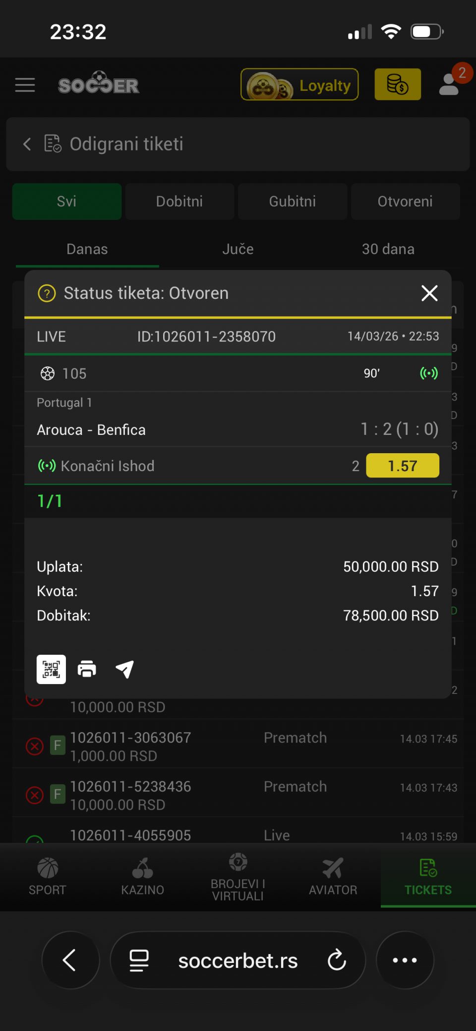 tip: over 1.5 (73 minut trenutni rezultat 0:1)