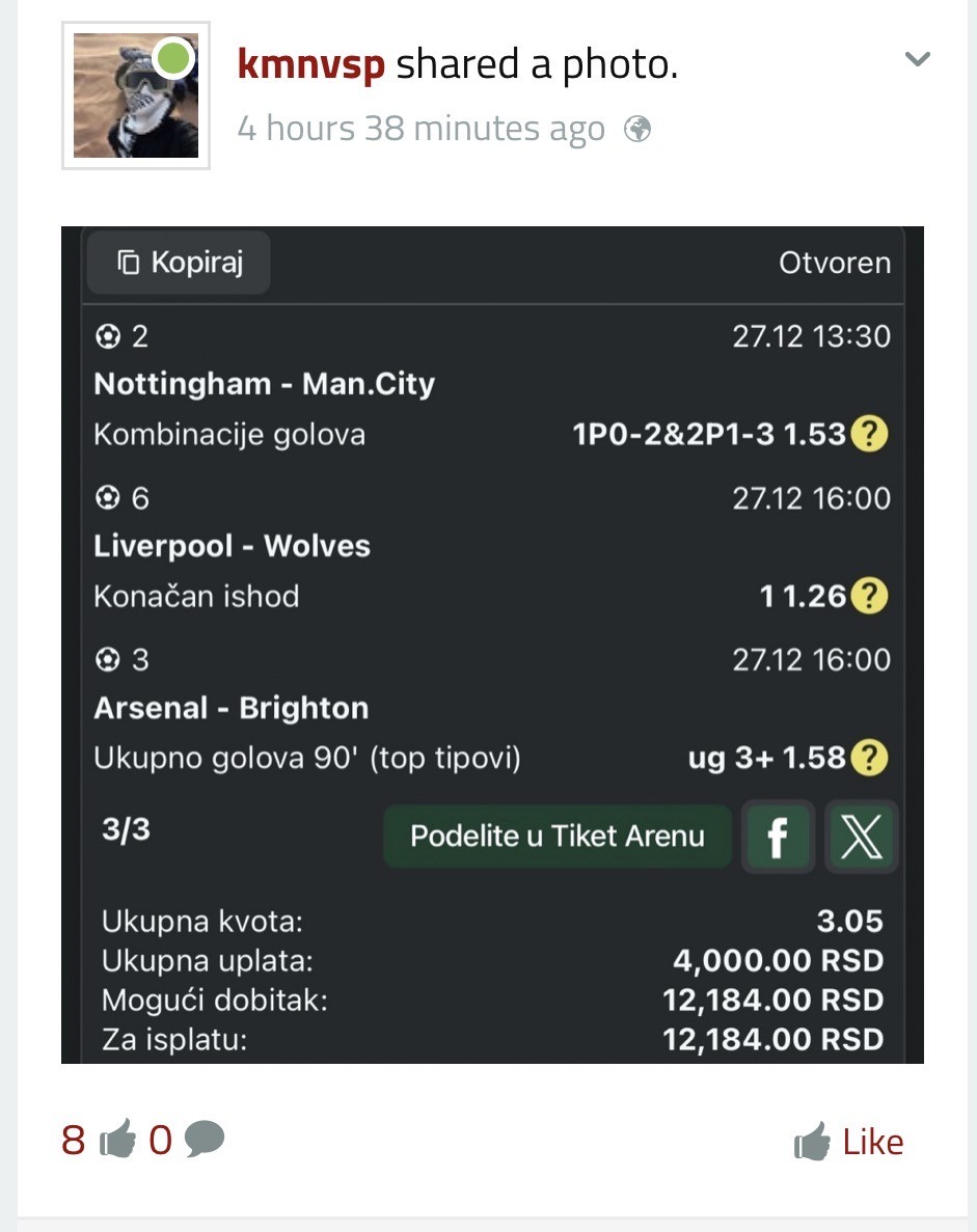 tip: over 3.5 (79 minut trenutni rezultat 0:3)