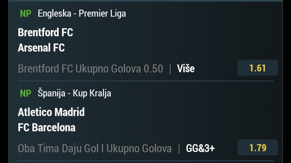 Arsenal x2 i 2 do 4 1,90 kvota.. Barselona Winer 2 1,85 kvota.