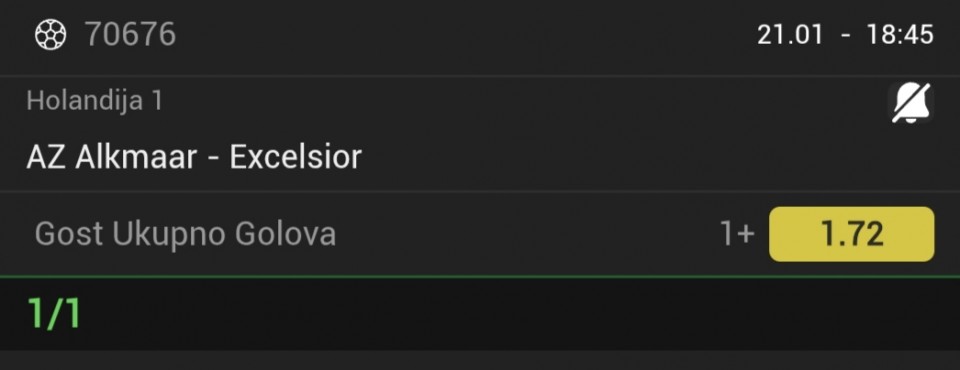 tip: over 2.5 (73 minut trenutni rezultat 1:1)