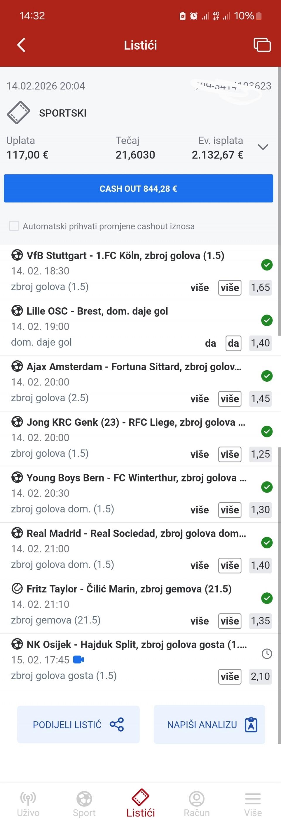 Čudi me da niko ne predloži slovenačku ligu. Konkretno Primorje - Maribor, igram Maribor više od 1.5 gola na meču kvota 1.60