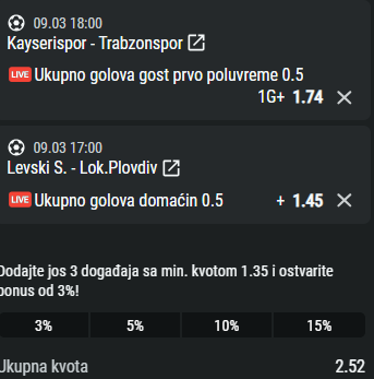 ukupna kvota: 1.95