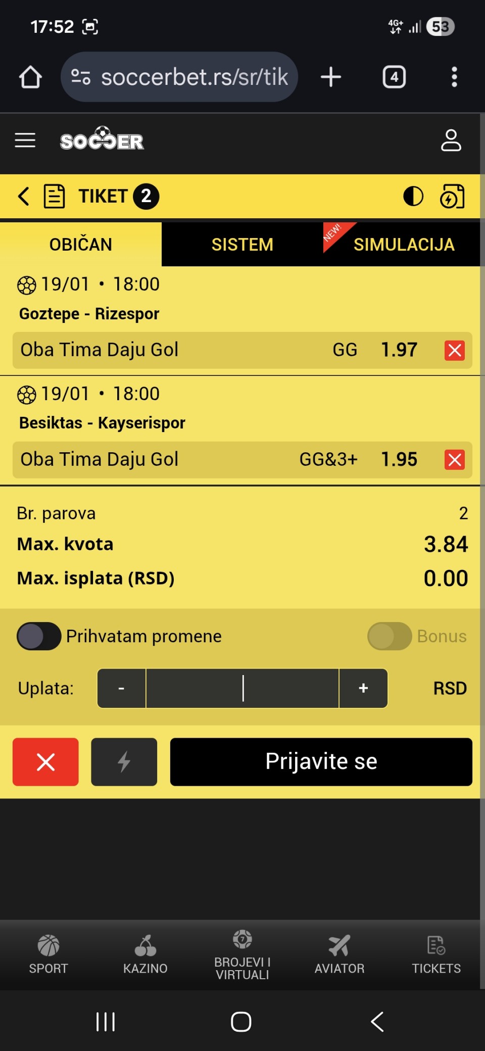tip: over 0.5 pp (21 minut)